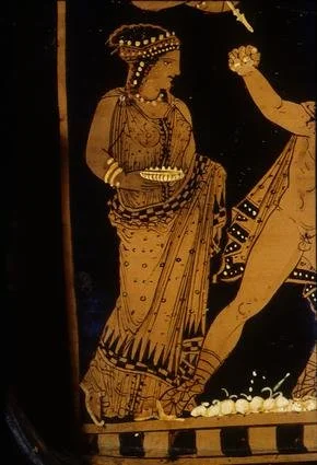 Harmonia, as seen on a Late Classical calyx krater currently in the Louvre.
